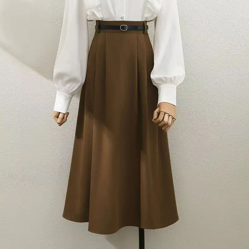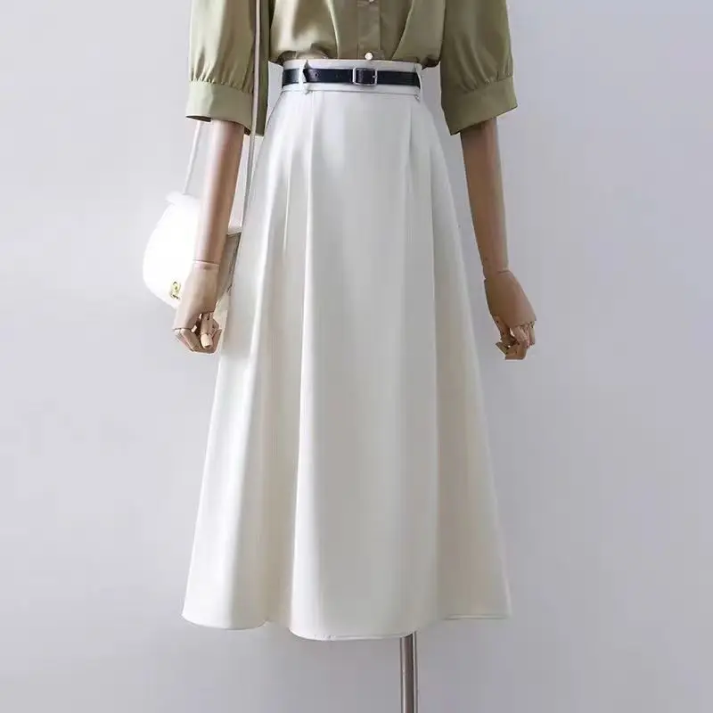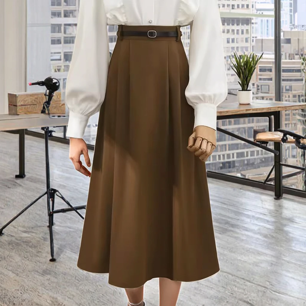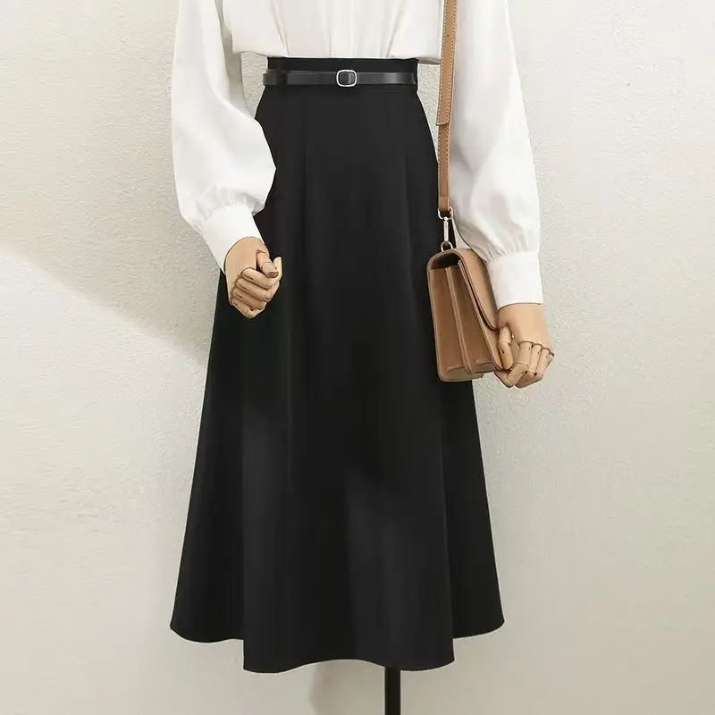 Professional Casual Breathable Commuting Regular Waist Mid Length Women's Temperament A-line Large Swing Skirt
